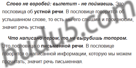 Прочитай пословицы. В какой пословице говорится об устной речи, а в какой — о письменной? Объясни, почему ты так считаешь.