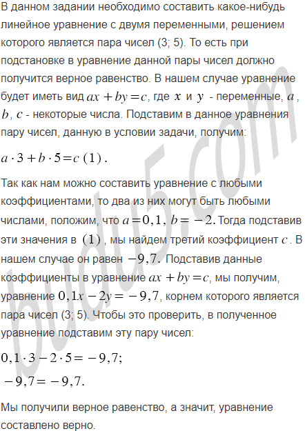 Составьте какое-нибудь линейное уравнение с двумя переменными, решением которого является пара чисел (3; 5).